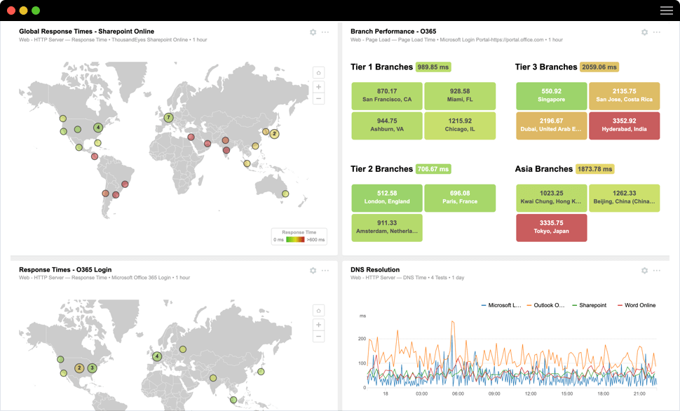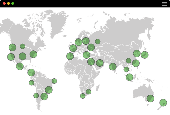 Следите за работой цифровых сервисов с любой точки земного шара. Тысячи глобальных и локальных агентов (включая AWS, Azure, Google Cloud, Oracle, Alibaba) позволяют видеть, как ведёт себя приложение у реальных пользователей — от их устройства до любого облака, через любую сеть. Получайте полноценный 360-градусный обзор доступности и производительности сервисов — так, как будто они под вашим управлением.