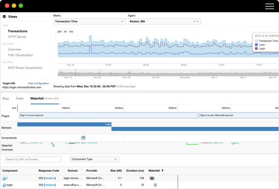 Узнаете, как пользователи на самом деле взаимодействуют с вашими приложениями. ThousandEyes имитирует реальные сценарии: загрузка страниц, переходы между экранами, авторизация, оплата — и показывает полную картину: от времени отклика до конкретного шага, где что-то тормозит. Визуальные waterfall-диаграммы, скриншоты, ключевые метрики и детали по каждому этапу — ваш инструмент для улучшения клиентского опыта (Customer Experience).