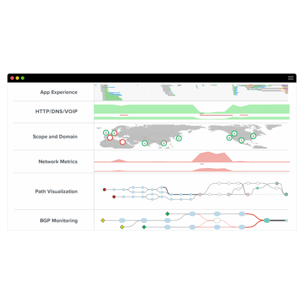 С тысячами глобальных точек мониторинга и миллиардами измерений каждый день, ThousandEyes отслеживает каждый аспект работы ваших сетей и облачных сервисов. Система использует ИИ, чтобы подсветить то, что действительно важно — и вы оставались в управлении всей своей цифровой инфраструктурой.
